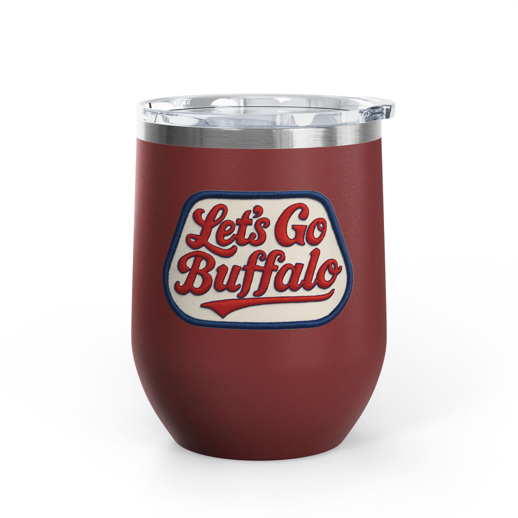 Buffalo Bills Stitched Patch Look Wine Tumbler 12oz Insulated Travel Cup for Wine Lovers, Buffalonians, Bills Fans and Bills Mafia