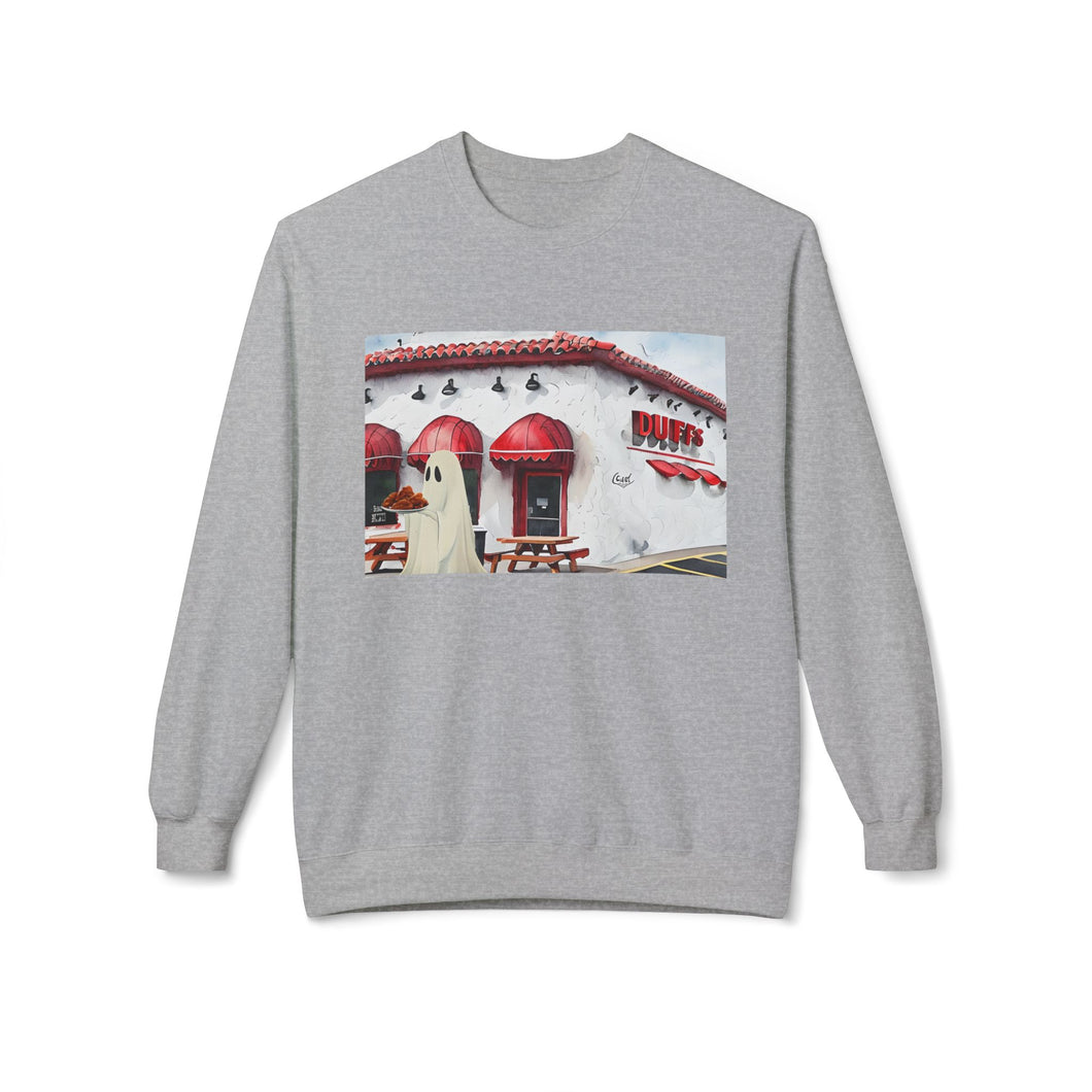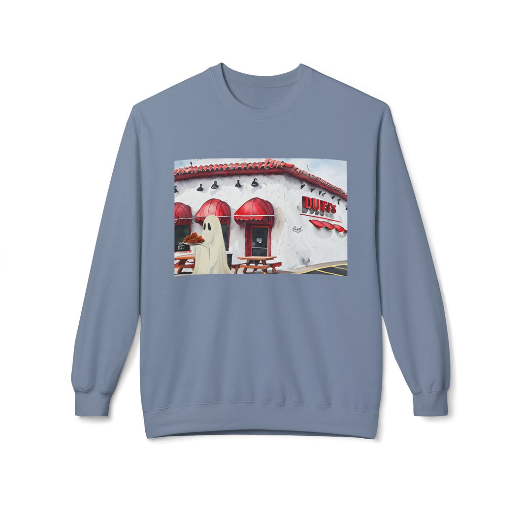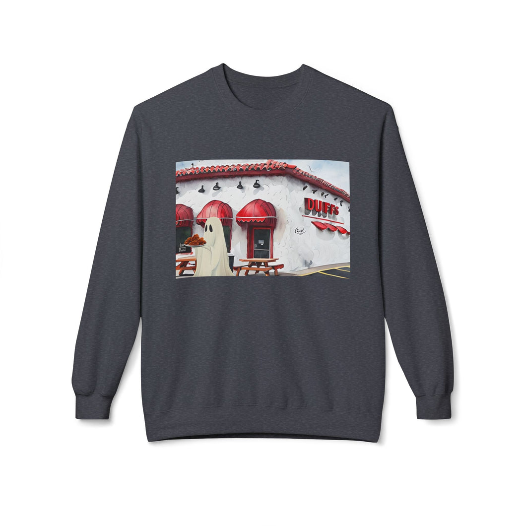 Duffs Chicken Wings Buffalo Ghost Crewneck Sweatshirt, Cozy Fall Fashion, Halloween Apparel, Spooky Gift, Unisex Casual Wear